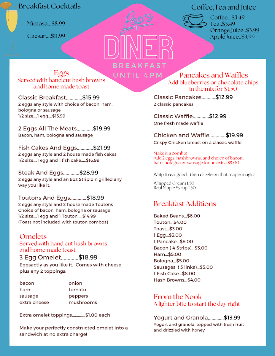 Pop’s Diner Menu
